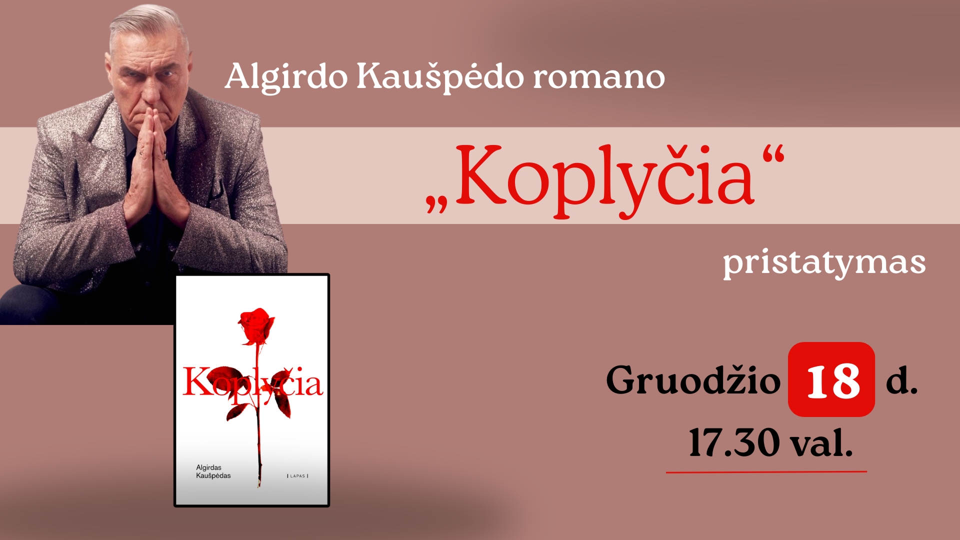 Artėjant gražiausioms metų šventėms, gruodžio 18 d., 17.30 val., alytiškius pakviesime į atviro, drąsaus ir apnuoginančio Algirdo Kaušpėdo romano „Koplyčia“ pristatymo vakarą Alytaus Jurgio Kunčino viešojoje bibliotekoje (Seirijų g. 2).