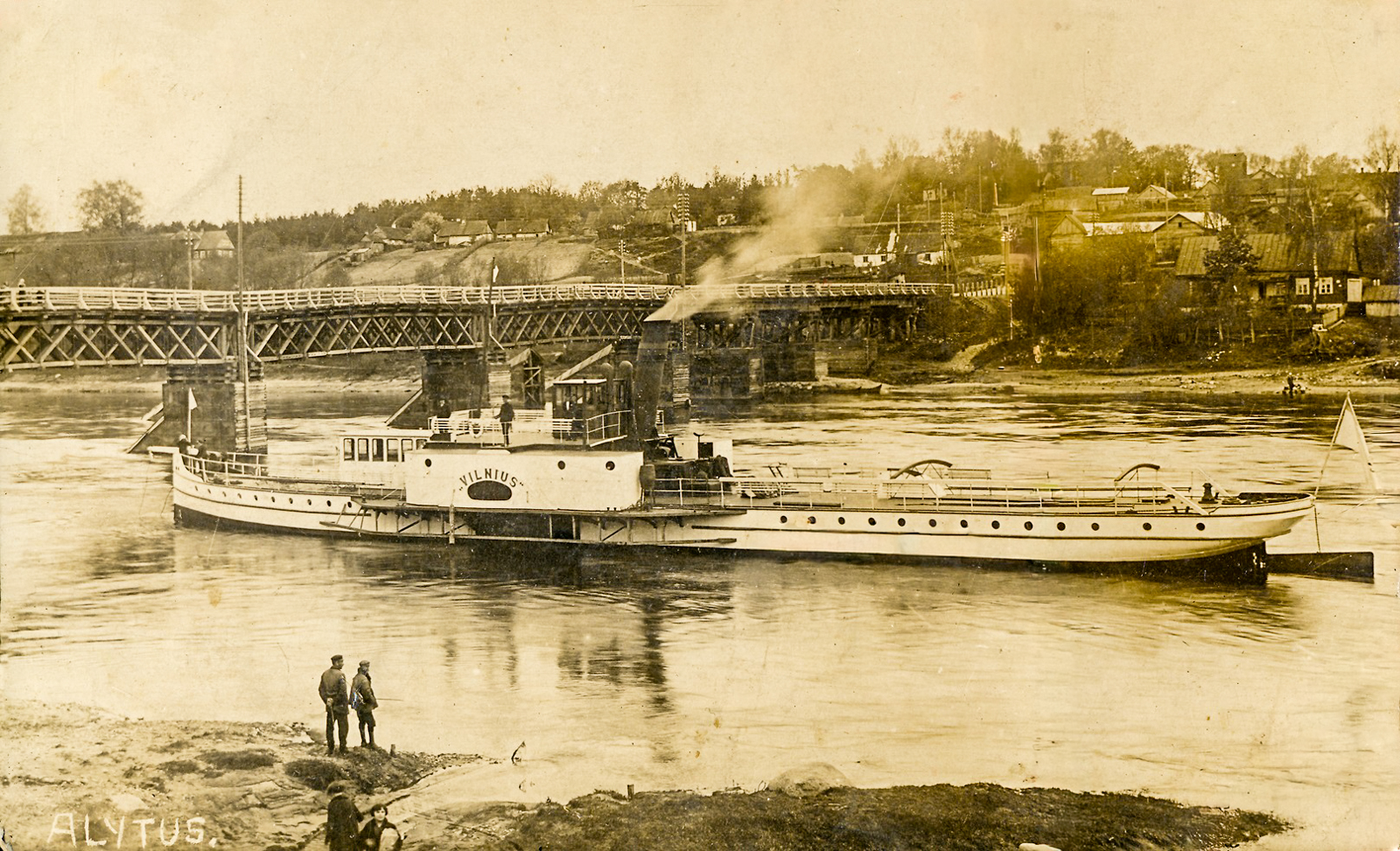 Susisiekimas tarp dviejų krantų vyko valtimis, keltu, šokinėjant ledo lytimis, upei užšalus – ledu. Ir tik XX a. pr., 1909 m., pirmą kartą Alytuje, pačiame mieste, per Nemuną buvo pastatytas medinis tiltas, kurio statybos apipintos šiurpokomis legendomis.