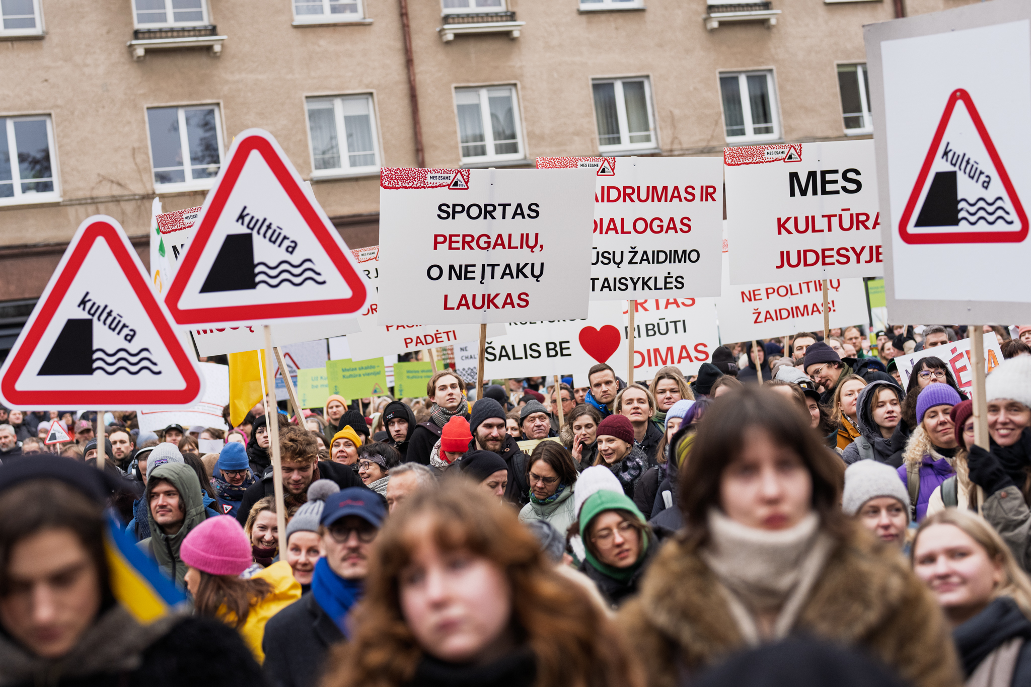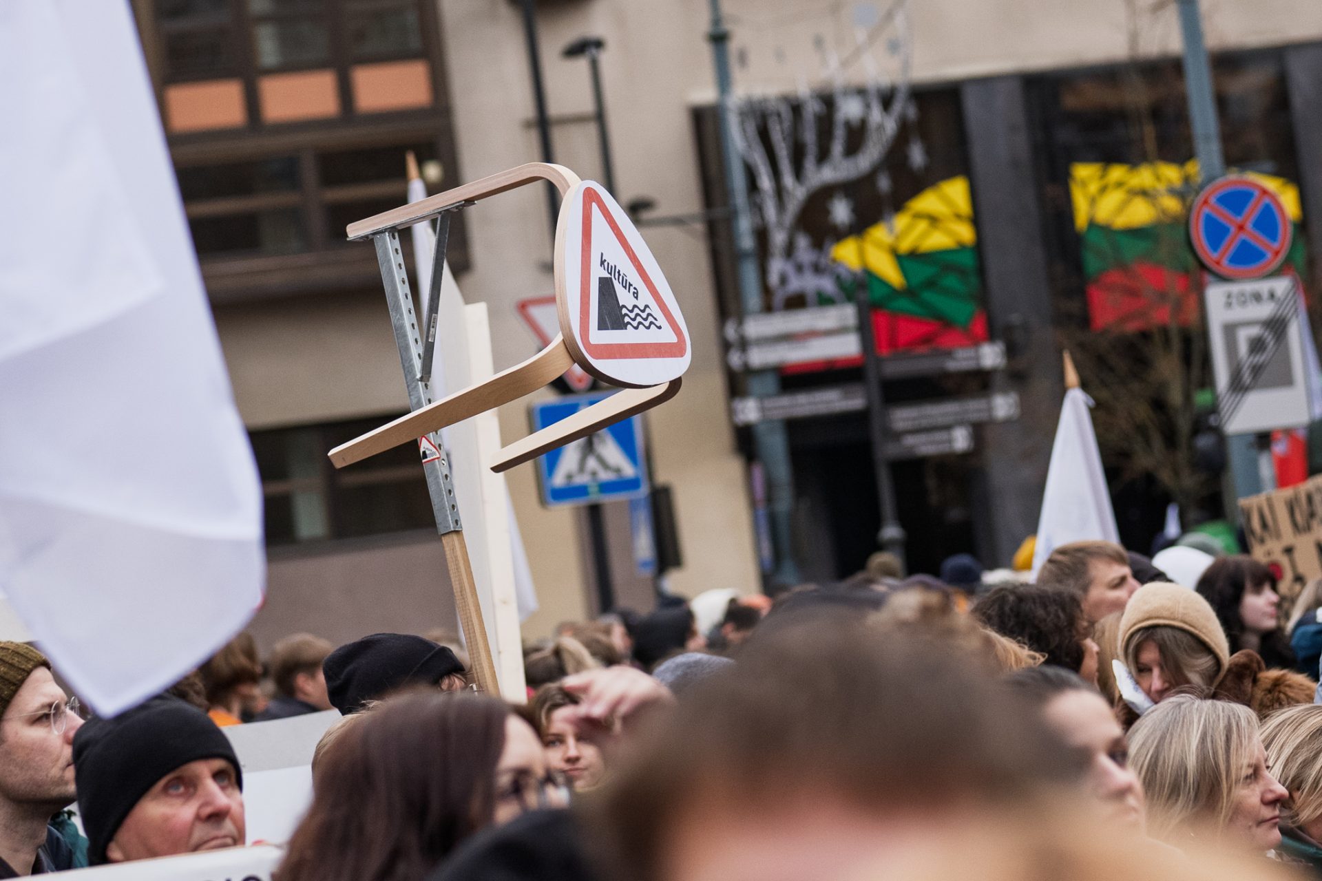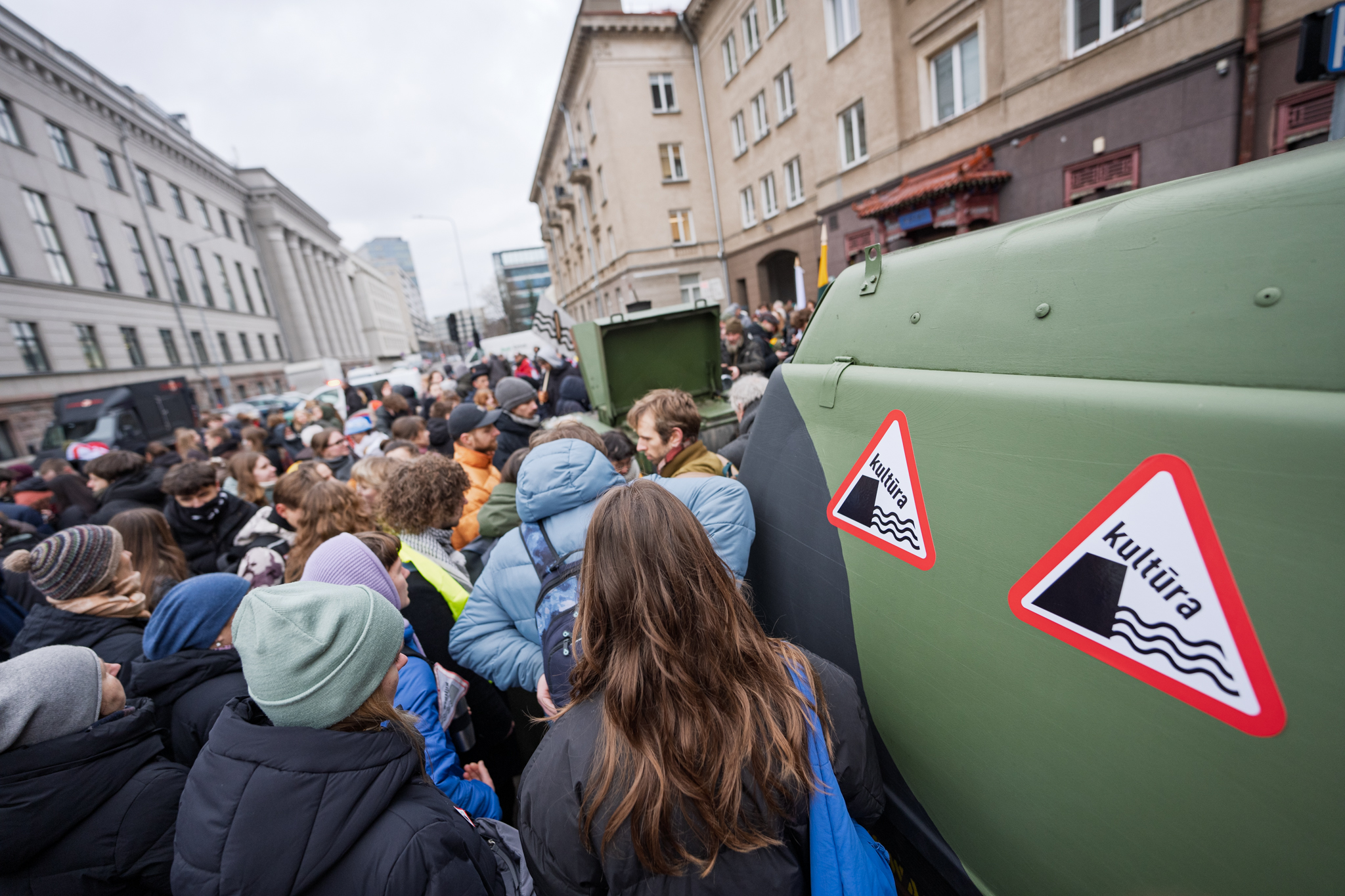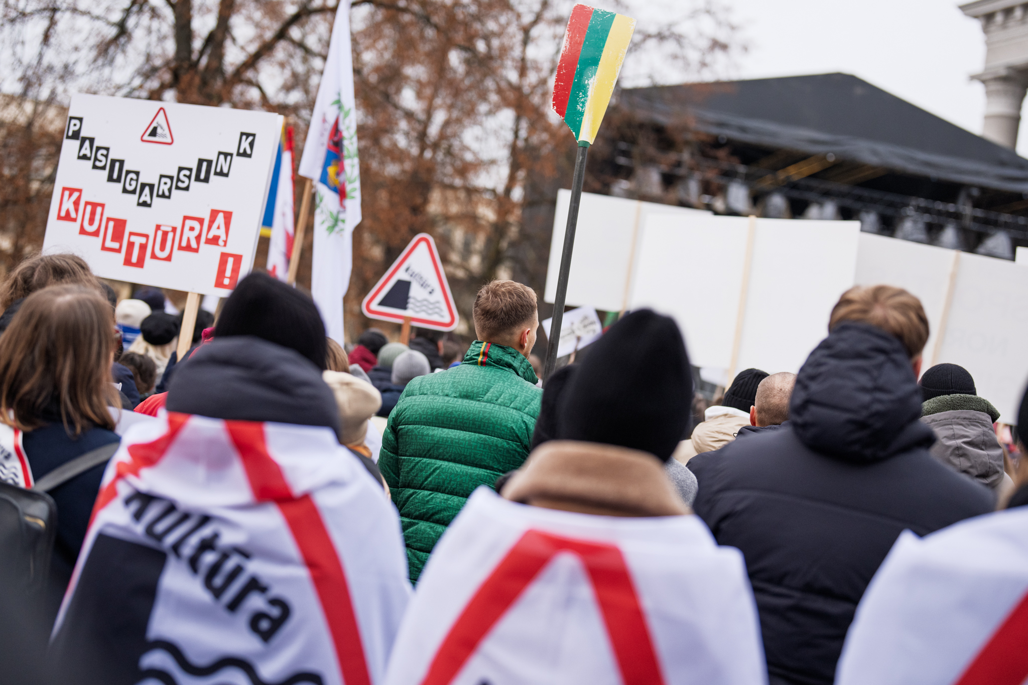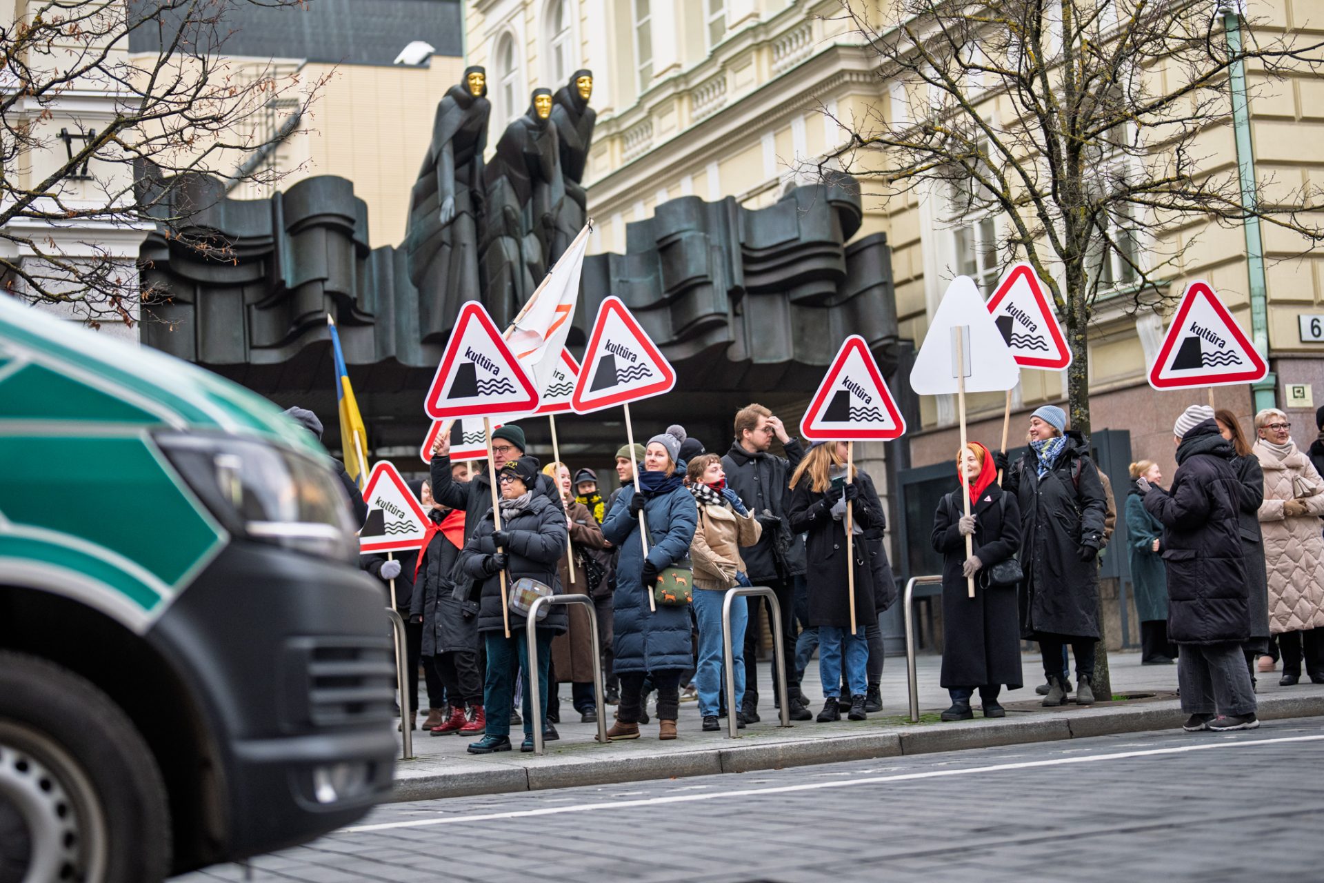 Prieš porą mėnesių susivienijusi, kad į Kultūros ministeriją neįleistų „Nemuno aušros“ atstovų, kultūros bendruomenė mitingu sako norinti išsakyti nerimą dėl visos valstybės ateities.