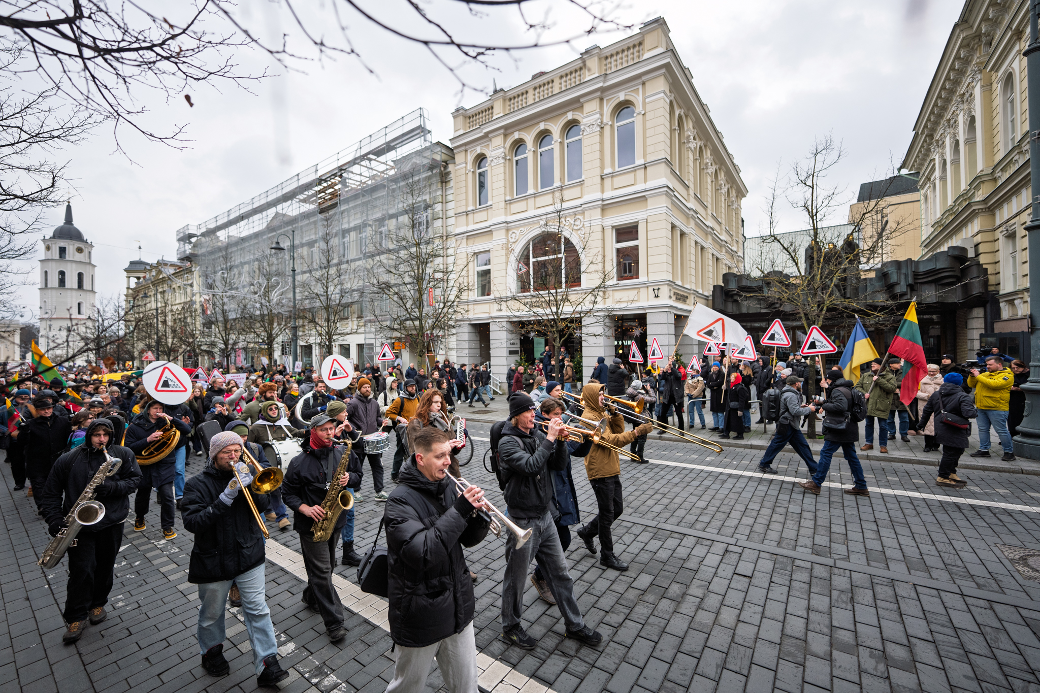 Žygiuodami protestuotojai nešė kultūros protesto ženklus, Lietuvos vėliavas, plakatus „Gana tyčiotis iš Lietuvos“, „Už kiek pardavei Lietuvą?“, „Pasigarsink kultūrą!“, Man rūpi Lietuva“ ir panašius, mušė būgnais, grojo kitais instrumentais.