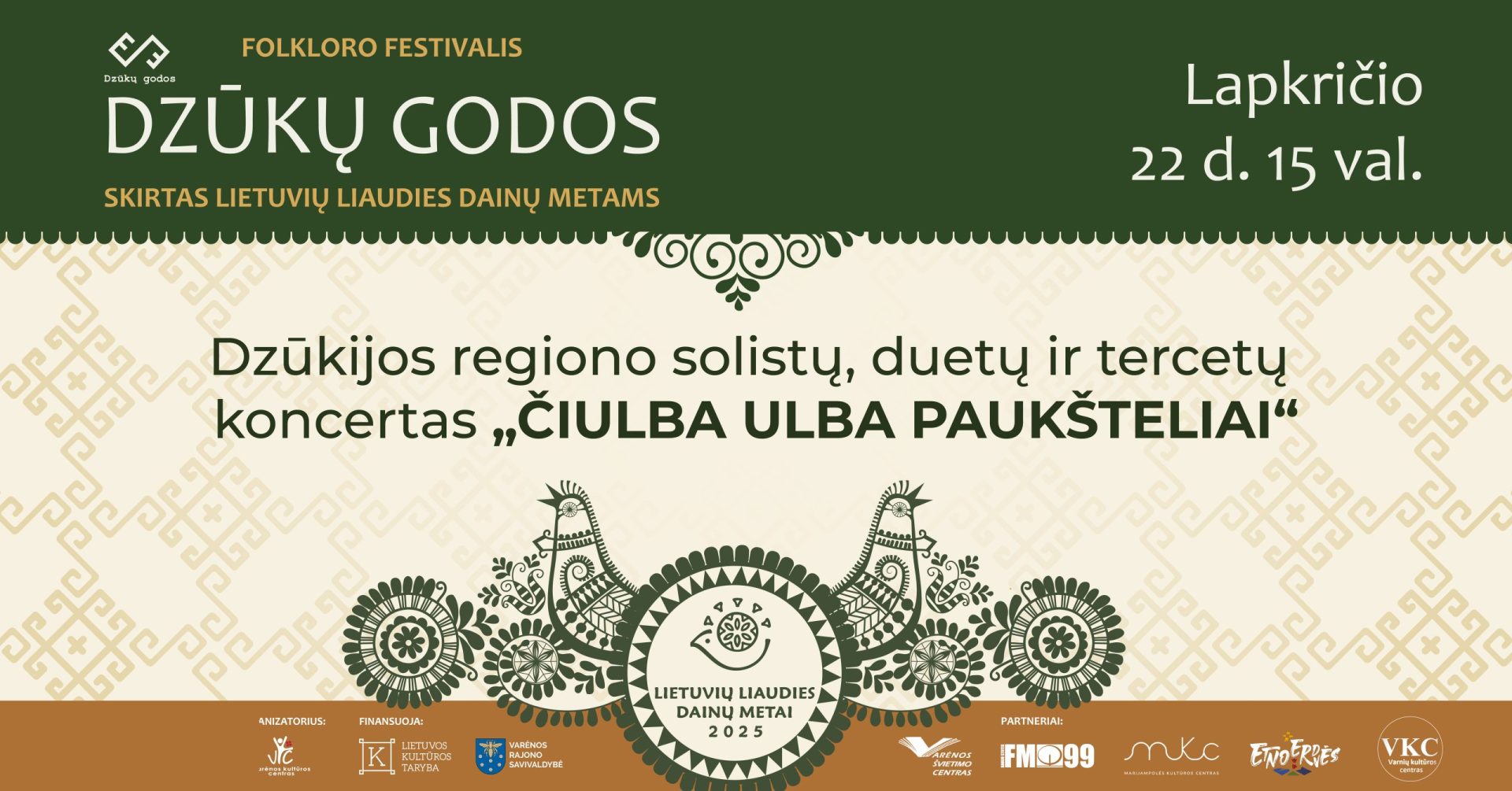 Lapkričio 22 d. 15 val. Dzūkijos regiono solistų, duetų ir tercetų koncertas „ČIULBA ULBA PAUKŠTELIAI“.