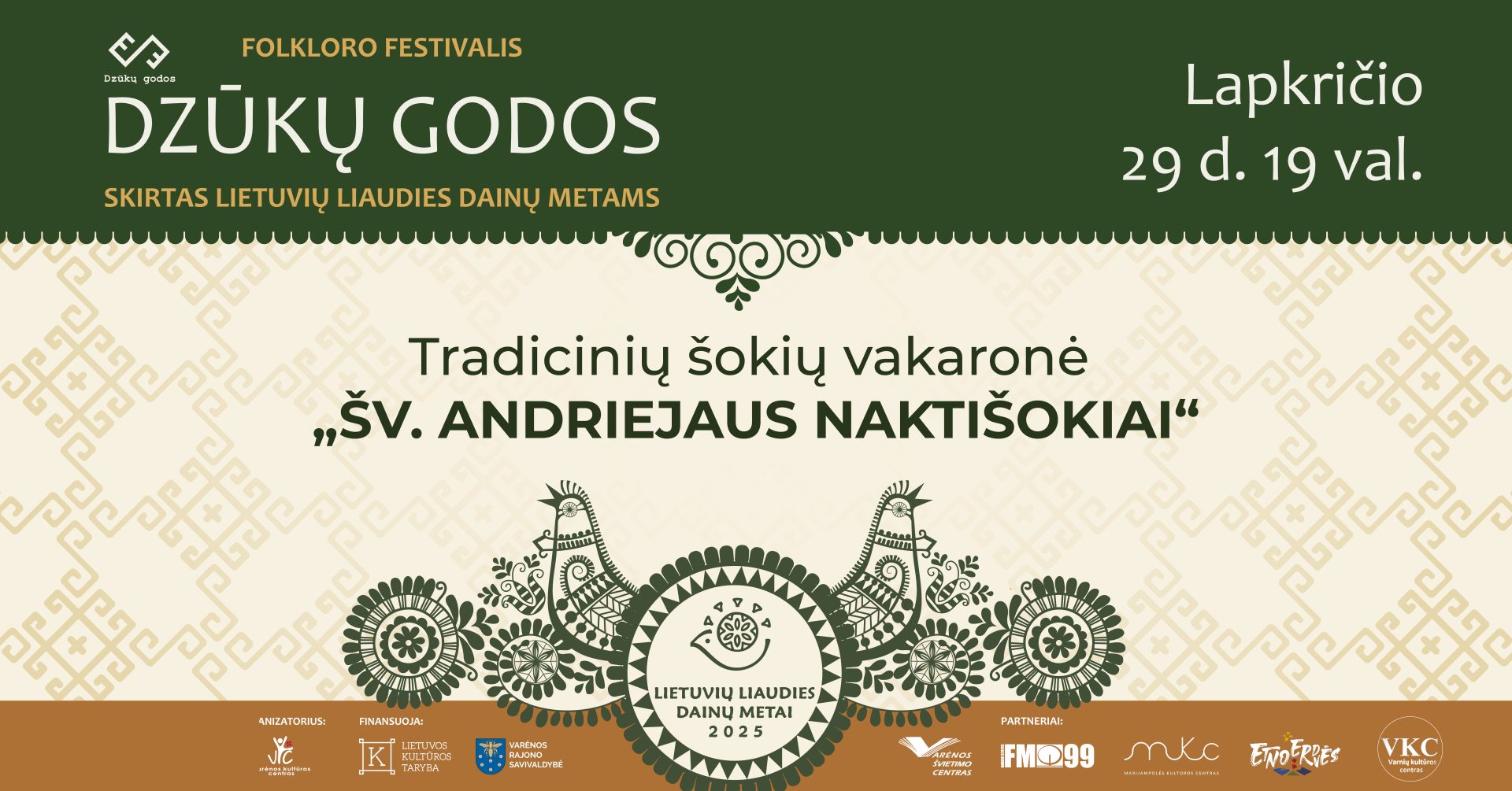 Festivalį vainikuos lapkričio 29 d. 19 val. vyksianti Tradicinių šokių vakaronė „Šv. Andriejaus naktišokiai“.
