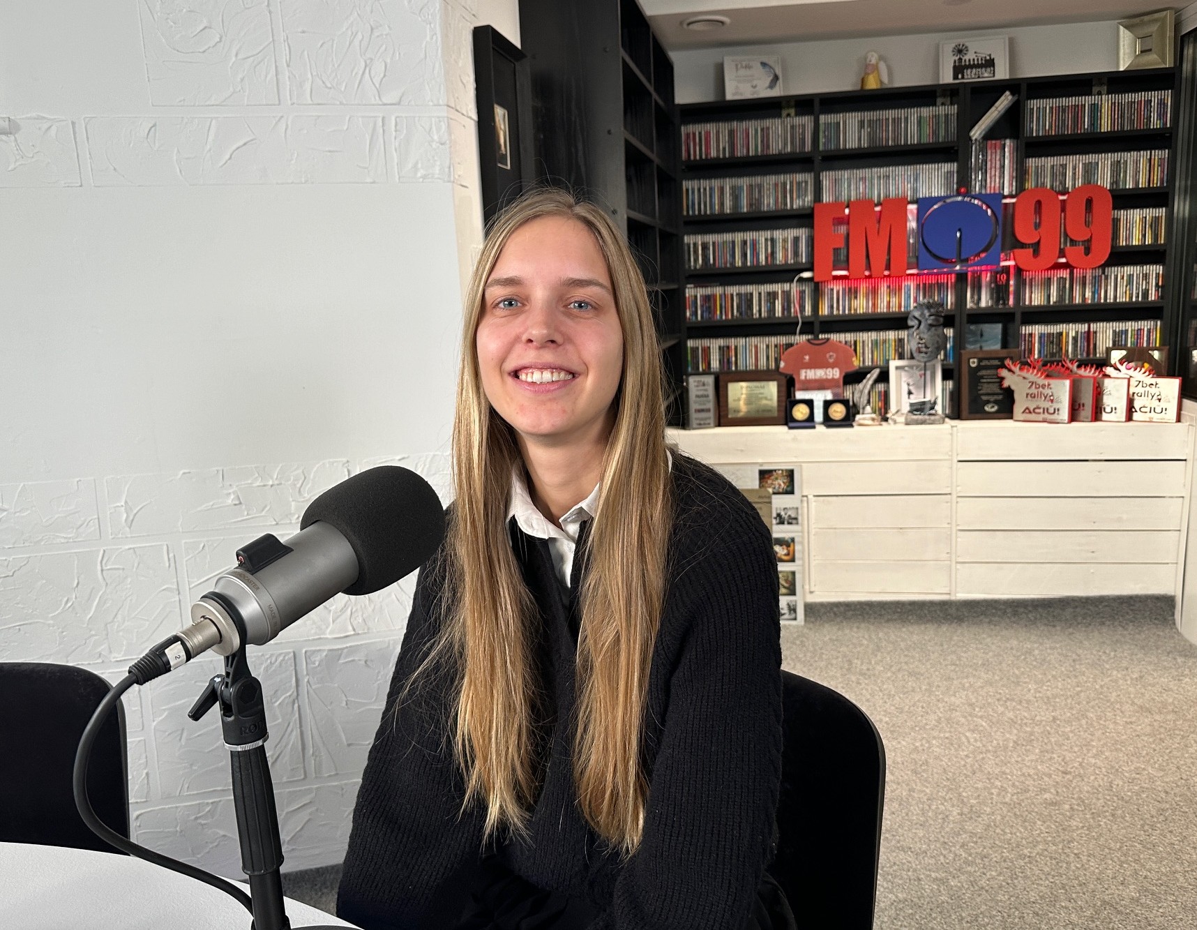 Radijo stoties FM99 studijoje – Vaikų kūrybiškumo ugdymo studijos „Kuria vaikai“ Alytaus, Druskininkų ir Marijampolės filialų vadovė Aistė Sarokienė.