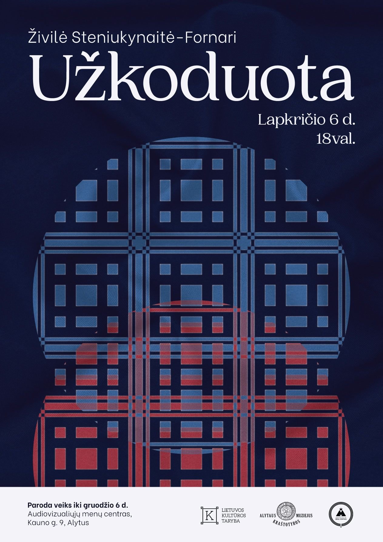 Alytaus Audiovizualinių menų centre, lapkričio 6 d. 18 val. vyks tekstilės darbų solo parodos „Užkoduota“ atidarymas.