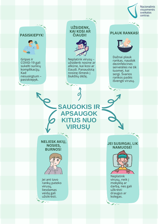 Primename, kad vieno vizito metu galima skiepytis ir nuo gripo, ir nuo COVID-19. Norint pasiskiepyti nuo gripo, reikia kreiptis į gydymo įstaigą, kurioje asmuo prisirašęs, o dėl vakcinacijos nuo COVID-19 ligos – į bet kurią gydymo įstaigą, užsakiusią šių vakcinų.